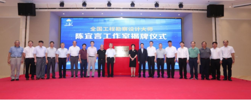 儀式講話后,主持人邀請饒紅蕾主任、王用中大師以及陳宜言大師、林強有董事長等20位領導、嘉賓上臺,為工勘集團“全國工程勘察設計大師陳宜言工作室”揭牌。儀式結束后,與會嘉賓還參觀了工勘集團展廳和陳宜言大師工作室。
