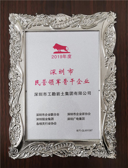 工勘巖土集團(tuán)深耕巖土領(lǐng)域近30年,始終堅(jiān)守專業(yè)主義,先后完成了一大批國家、省、市級重點(diǎn)項(xiàng)目,數(shù)十項(xiàng)工程獲國家級、部級等全國性獎(jiǎng)項(xiàng),數(shù)百項(xiàng)工程獲省、市級優(yōu)秀工程獎(jiǎng)項(xiàng)。此次成功入選“2019年度深圳市民營領(lǐng)軍骨干企業(yè)”,再一次體現(xiàn)了社會(huì)各界對工勘品牌實(shí)力和科技創(chuàng)新的充分認(rèn)可。