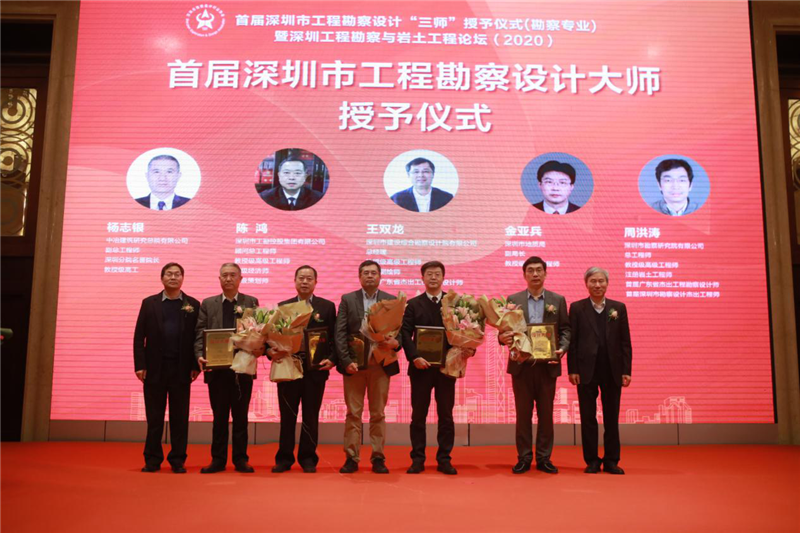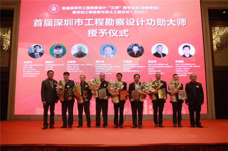工勘集團(tuán)總工程師陳鴻(左三)獲評為“首屆深圳市工程勘察設(shè)計(jì)大師”