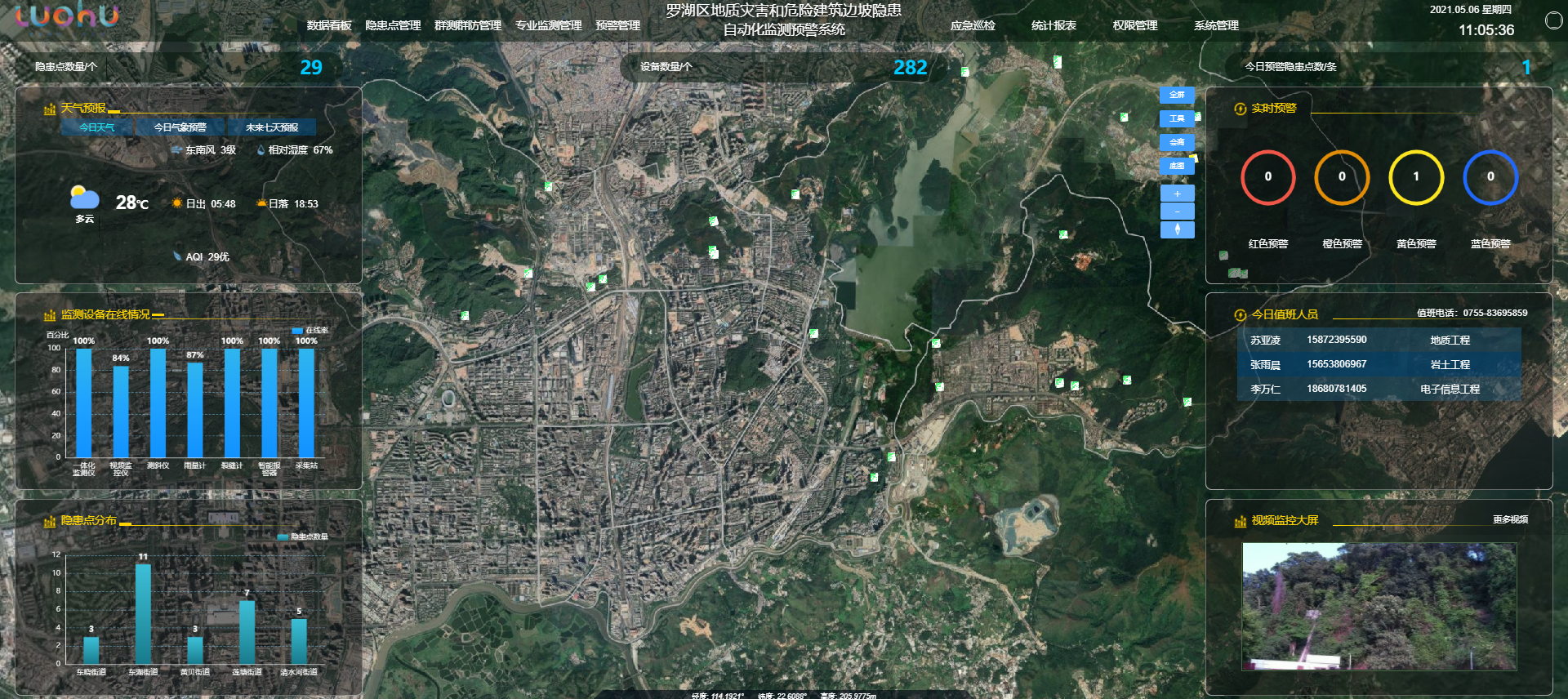 為減少地質(zhì)災(zāi)害和危險(xiǎn)建筑邊坡造成的危害,保障人民生命財(cái)產(chǎn)安全,全面遵循習(xí)近平總書記關(guān)于應(yīng)急管理“兩個(gè)堅(jiān)持”“三個(gè)轉(zhuǎn)變”的指示,堅(jiān)持以防為主,注重災(zāi)前預(yù)防,減輕災(zāi)害風(fēng)險(xiǎn),2020年底羅湖應(yīng)急局針對(duì)羅湖區(qū)29處危害程度較高、威脅人數(shù)非常多的重大邊坡隱患點(diǎn)進(jìn)行自動(dòng)化邊坡監(jiān)測(cè)預(yù)警建設(shè)工作。